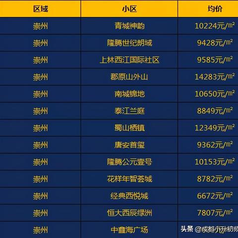 根据最新数据,崇州目前的房价总体保持稳定增长态势,具体数据如下: